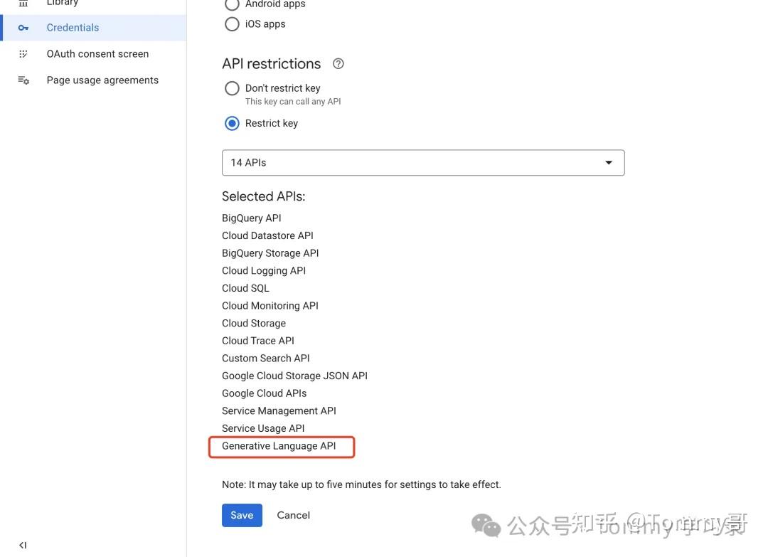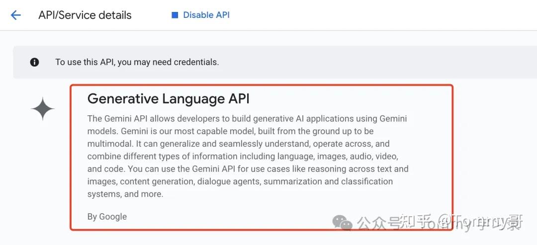 3、Enable Generative Language API,通过在对应的API Key下面添加 Generative Language API